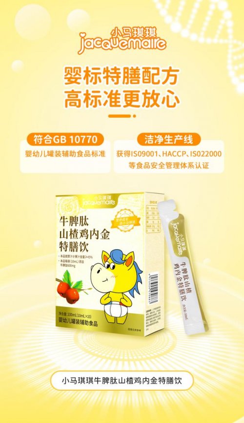脆弱脾胃更需要长期养护,针对脾胃虚弱,小马琪琪牛脾肽山楂鸡内金特膳饮新品上市,婴标特膳配方,一袋添加600mg牛脾肽,强健脾胃强化免疫,添加8重药食同源好食材3,养出宝宝好胃口。≥45果汁含量,酸甜口感宝宝爱喝,0添加纯净配方,安全天然草本,不好的都没有。长期养护娇嫩脾胃,助力宝宝吃饭香香身体棒棒!